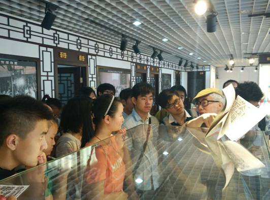 午后,同学们又跟着袁教授走进了北京最窄胡同——钱市胡同,了解百年前北京“金融街”的典故和生活景象。同学们还走进了“中国布鞋第一家”——百年老店内联升,见到了百年工艺,参观了内联升的博物馆,体悟了其以“朝靴、千层底和奥运礼仪小姐用鞋”三双鞋为代表线索的历史发展,其中体现出的历史传承的责任感值得敬佩。参观完内联升总店,实践活动接近尾声,袁教授最后为同学们做了精彩总结,同学们表示了对袁教授的诚挚谢意,带着对先生的不舍与满满的收获,师生们与袁教授道别,也期待着下次能再次向袁教授请教。正如同学所说,“七十多岁的袁老先生像是一本书,故事太多,讲不完,听不够”。