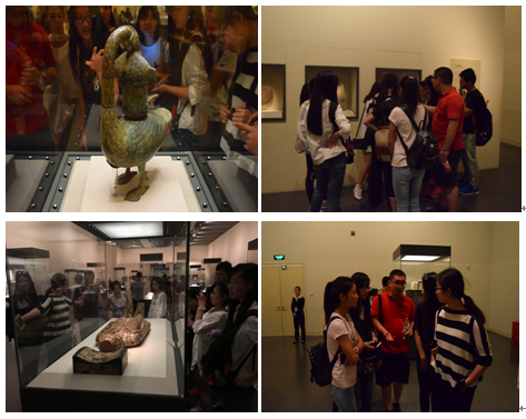 下午两点,同学们集中跟随国家博物馆官方讲解员对博物馆馆藏重点文物、国宝进行了重点参观。随后,同学们自由参观了各自感兴趣的专题陈列,如《中国古代瓷器艺术》、《中国古代玉器艺术》、《中国古代经典绘画艺术》等。