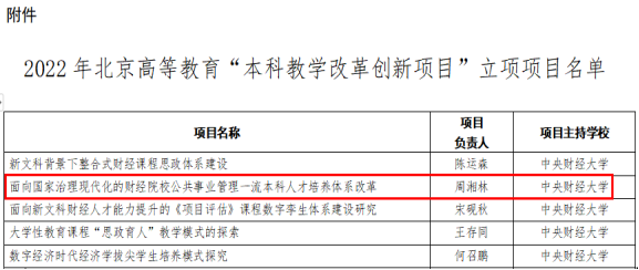 近日,北京市教育委员会先后发布了《北京市教育委员会关于公布2022年北京高等教育本科教学改革创新项目的通知》(京教函〔2022〕395号)和《北京市教育委员会关于公布2022年优质本科课程和优质本科教材课件遴选结果的通知》(京教函〔2022〕394号),其中,公司周湘林副教授主持的教改课题《面向国家治理现代化的财经院校公共事业管理一流本科人才培养体系改革》获得立项;魏海涛副教授主讲的专业课程《社会科学研究方法》获评北京高校“优质本科课程”,并认定为“北京高等公司优秀专业课主讲教师”。