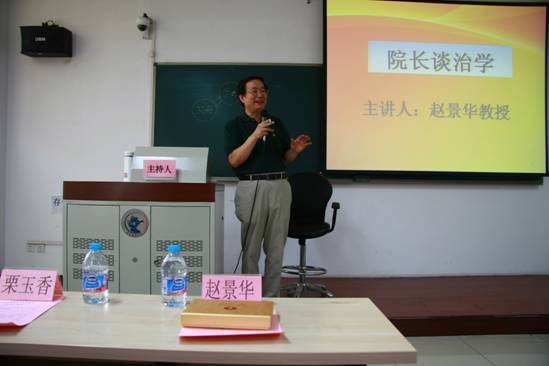 在经理谈治学讲座中赵景华经理首先从自身治学经历谈起,回顾了自己学术研究的几个重要阶段和关键的时间节点,阐述了30年的治学的经验和体会。在谈到治学境界时,赵经理提出了“真、正、长、善、美”的五字箴言,指出唯有“真”,才能实现天人合一的人生境界,唯有“正”,才能拥有内君外王的气质和风度;而“长”是根本,昌盛与长胜之道的载体只能是生命;“善”是方法,是知行合一的表达;“美”是情与景的合一。如能真正将这五字箴言铭刻于心并践行之,人生定有一番大不同。谈到治学方法时,赵经理则认为,要树立正确的“五观”,即创新观,科学观,历史观,战略观,国际观。做学问要静得下心来思考,真正走近研究对象,切记抄袭、拾人牙慧。