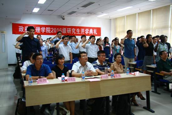 开学典礼的最后一项为新生入学宣誓,本次宣誓由2016级博士研究生杨柳领誓,“谨记中财校训,忠于祖国,服务人民,治学修身,尊师重道,求真务实,开拓创新,勇于担当,追求卓越,以公共管理之学识,成经世济民之良才,以正气浩然上善若水之精神,成中华复兴之伟业”!庄严的誓词表达了同学们为中华崛起而读书的决心。
