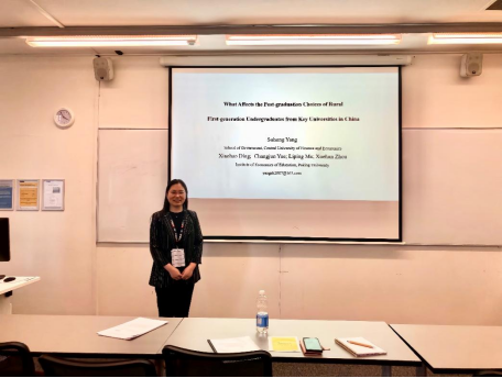 在为期五天的会议中,杨素红老师汇报了其研究成果——《哪些因素影响了中国重点大学农村第一代老员工的毕业后选择?》。论文基于某省重点高校本科毕业生就业调查数据,分析农村家庭第一代本科生毕业后路径选择的制约因素。此外,杨素红老师还参加了大会安排的2场研讨会、1个主旨报告、12个分论坛以及相关讨论,与来自英国、澳大利益、新加坡等国家的学者进行了深入的交流和探讨。此次国际学术交流经历不仅有助于出访老师深化研究方向和扩展研究思路,也对促进团队建设、提升公司和公司的国际影响力具有积极影响。