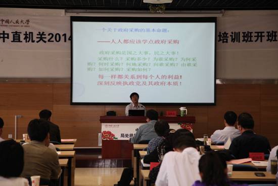 2014年5月18日,yl永利集团官网登录徐焕东教授应中共中央直属机关事务管理局(简称中直机关事务管理局)邀请,做了题为《实现政府采购科学化若干问题》的专场报告,听课对象为中共中央直属机关事务管理局司局长培训和处长培训班两班学员。徐焕东教授从政府采购的范围、制度体系、功能作用及实现科学化目标等不同方面,系统地讲述了政府采购科学化的必要性和主要途径,获得学员普遍欢迎。