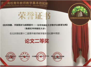 北京高校第十二届青年教师教学基本功比赛论文比赛公布成绩,公司杨素红老师《挂科预警、学困帮扶与成绩提升——以yl永利集团官网登录数学公修课为例》一文从405篇参赛作品中脱颖而出,获得二等奖。