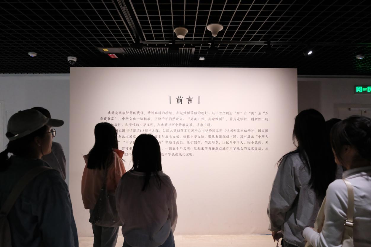 活动伊始,同学们参观了“亘古巨制 煌煌文脉——中华传统文化典籍陈列展”,驻足观看了“民族元典”“轴心时代”“中华一统”“交流互鉴”“文化高峰”五个单元的展览,透过经典文物和古籍,同学们得以探寻中华文明的发展脉络,感悟典籍承载的思想精髓,深刻体会中华文脉绵延千年的厚重底蕴。