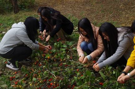 第三组成员则走出校园,以“服务社区”为主题,前往公司志愿基地—爱地敬老院进行了一系列的“爱老敬老”活动。在敬老院中,小组成员积极为菜地除草松土、在菜地里采摘果实并为敬老院清扫落叶。