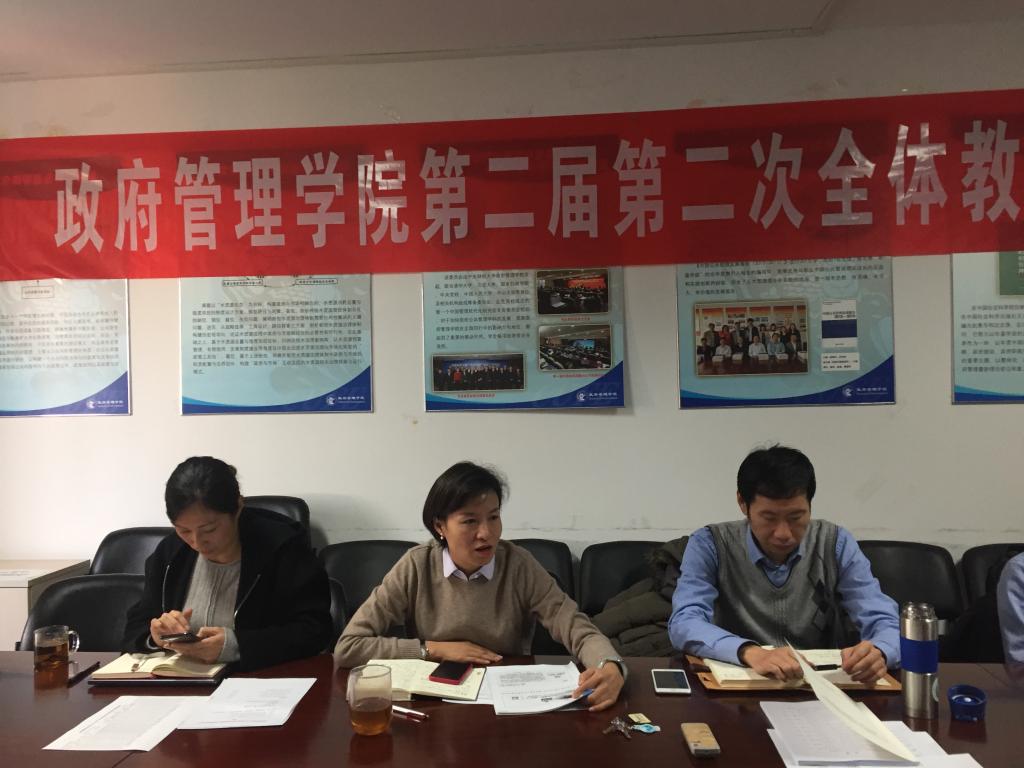 会议上,行政管理系党支部书记李文彬教授、公共事业管理系党支部书记周湘林副教授、城市管理系党支部书记陈红霞副教授、资源与环境管理系党支部书记吕阳副教授、国际政治系党支部书记张占顺副教授等5位教师党支部书记现场述职,其他6位党支部书记书面述职,与会人员对履职满一年的8位党支部书记进行了现场评议考核。现场述职上,5位教师支部书记围绕学习贯彻落实习近平新时代中国特色社会主义思想和党的十九大精神、推进“两学一做”学习教育常态化制度化、贯彻全国教育大会和各级思想政治工作会议精神、抓党建促进支部建设等方面,重点介绍了自己在2018年的履职情况,展示了支部党建工作开展的特色做法和亮点,同时对支部党建工作存在的工作难点和问题进行了阐述,提出了进一步加强基层党组织建设的思路和措施。