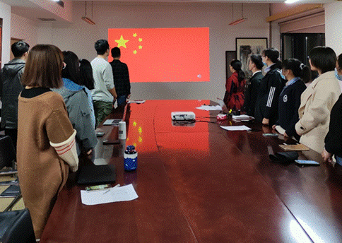 会议第一项,全体起立,奏唱《国歌》。