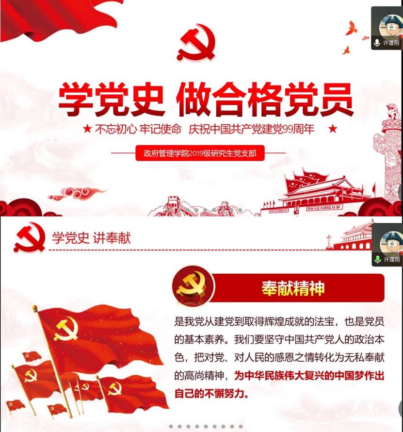 为配合做好“庆祝建党99周年、迎接建党100周年”主题教育活动,yl永利集团官网登录2019级研究生党支部于7月2日开展了线上党课学习活动。会议由支部书记许雄刚主持,支部全体党员、积极分子及团员积极参加。