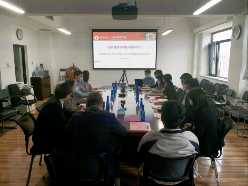李宇环首先传达学习习近平总书记视察中国人民大学重要讲话精神,同时指出全院师生要持续深入学习贯彻习近平总书记重要讲话精神,不折不扣将总书记的要求贯彻到公司各项工作的全过程、全方位,进一步落实立德树人根本任务,回应公共管理学科发展时代命题,引领青年员工奋发有为,以优异成绩迎接党的二十大胜利召开。