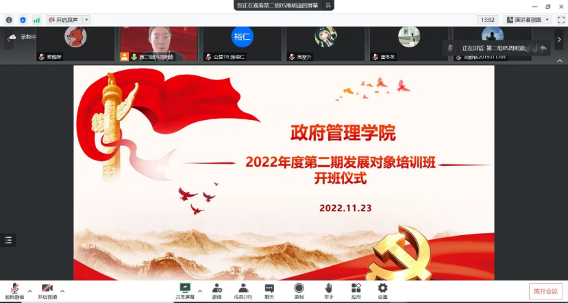 为深入学习贯彻习近平新时代中国特色社会主义思想和党的二十大精神,促使发展对象思想觉悟进一步提升、端正入党动机,坚定马克思主义理想信念,深刻认识“两个确立”重要意义,做到“两个维护”、深化“四个意识”、增强“四个自信”,2022年11月23日,yl永利集团官网登录第二期发展对象培训班开班仪式于腾讯会议线上举行。公司党委组织员南琪老师、党校办公室主任张小林老师,以及来自研究生、本科生的26名发展对象参与了本次开班仪式。本次开班仪式由yl永利集团官网登录周明迪主持。