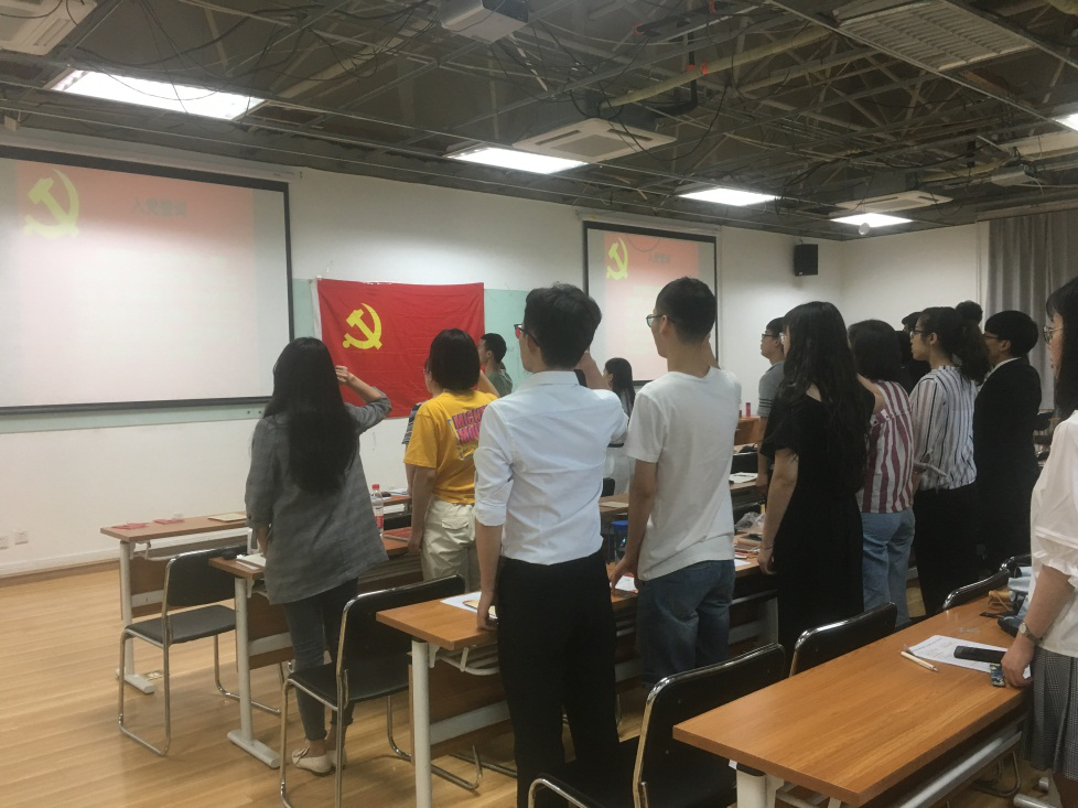 最后,会议进入最后一项内容——集体宣誓,领誓人为田飞学长。新党员的宣誓标志着其正式加入中国共产党并许下为党和人民奉献终身的承诺,老党员重温入党誓词,坚定初心,继续为党的事业奋斗终生。
