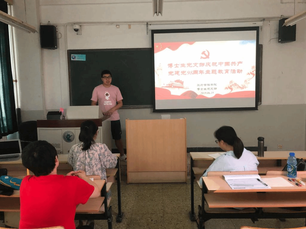 2019年6月19日上午,yl永利集团官网登录博士生党支部于教学楼主楼111教室召开庆祝中国共产党建党98周年主题教育活动。