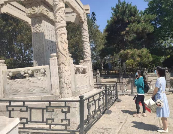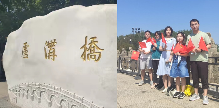 党小组成员首先来到位于宛平城外的卢沟桥遗址。1937年7月7日,日本帝国主义悍然发动七七事变,全面侵华战争爆发,中华民族开始了长达八年抗日救亡、浴火重生的运动。八十多年过去了,卢沟桥的烽火硝烟已然逝去,但战争给整个中华民族留下的惨痛伤疤,就像宛平城城墙上的弹孔一样,无法磨灭。走在本是中国古代文化建筑但却历经战火蹂躏的卢沟桥上,党小组成员似乎感受到了那一刻的民族危亡和全民浴血奋战的坚韧顽强,深深地体会到如果没有当年中华儿女英勇无畏地抵抗,就不可能有如今的和平繁荣,对革命先烈崇敬之情油然而生。
