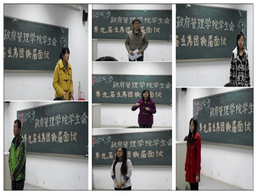 2月27日晚,yl永利集团官网登录第九届主席团换届面试活动于沙河校区7号楼313教室开展。团总支书记孙帮谦老师、12级辅导员康妍妍老师及现任主席团的五位成员担任评委。参加竞选面试的有宋亦明、葛野嫣然、唐芊等来自不同专业的共7名同学,上场次序由试前抽签决定。
