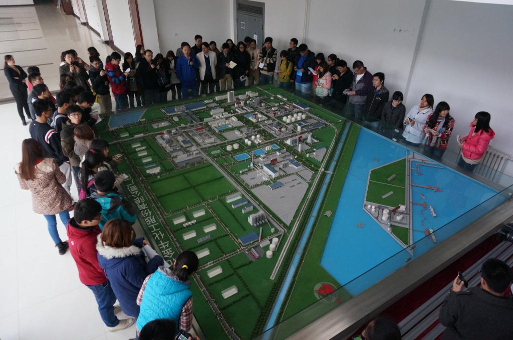第一天,同学们的主要参观方向是开发区的工业区,包括沧州大化、河北金牛化工、黄骅综合大港等工业园区,这些化工公司是沧州经济开发区的支柱产业,主要生产pvc材料、香料、工业用盐等化学材料,由于沧州主要打造循环经济链,不同的企业之间可能形成了产业链的上下游,大大节约了原材料,提高了产品产量,为沧州打造国际化工园区打下了坚实的基础。参观途中都有沧州市有关人员全程讲解,每到达一个园区,同学们踊跃提问,对开发区化工产业的发展有了更深刻的了解。晚上,由沧州开发区的领导与两个公司师生共同参加了中国区域科学协会·河北沧州经济开发区合作揭牌仪式,仪式之后是有关领导与员工的座谈会,同学们针对当天的见闻,提出有关于区域规划中空间、环境、经济等各方面的问题,有关领导予以解答,会场气氛一度被推向高潮。