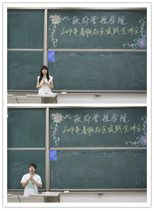 在听完栗老师的讲解之后,在场同学已经对于暑假社会实践有了一个较为宏观的认识。为了使同学们对于实践活动细节能有更多的了解,校实践学术部副部长尹乐薇从公司审阅过程的角度为同学们讲解标书制作中需要注意的内容,讲解过程非常详细,重点突出。此外,尹同学还结合自己实践的切身经历,使得介绍变的更加生动,给同学们以直观感受,让大家受益良多。紧接尹同学的讲解,暑期社会实践优秀个人陈建煜对两位嘉宾所讲内容进行了总结,并相应扩充。他主要从组队、选题、撰写标书、实践规划等角度做出指导讲解,在这过程中穿插了各种实例、图片,大大提高了内容的说服力。