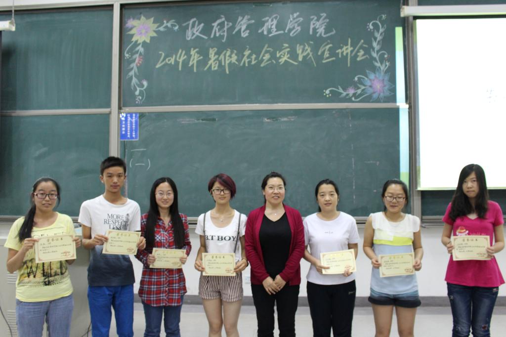 三位嘉宾讲解完毕,yl永利集团官网登录团总支书记孙帮谦对三位嘉宾表示了感谢。紧接着,孙老师宣读了yl永利集团官网登录寒假社会实践优秀个人名单,栗玉香老师对获奖同学进行颁奖并作总结。她再次强调了实践活动之于老员工锻炼提升的重要作用,希望大家踊跃参与,注重诚信及规范,争创佳绩。至此,yl永利集团官网登录2014年暑假社会实践宣讲会圆满结束,所有到场同学与嘉宾上台合影留念。