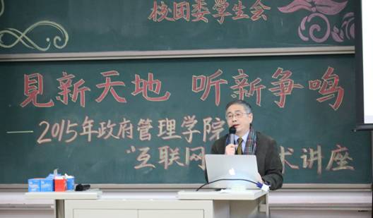讲座伊始,杨永强先生发表了演讲。他以“互联网+生态新玩法”为主题,通过对乐视网今年发展成果的分析来突出互联网已成为中国国家经济发展的重要动力、表达对互联网未来的展望。在他的讲话中,互联网时代的竞争是生态的竞争,与现代产业有着紧密的联系,现代产业靠生态链的各个环节产生价值、产生竞争力。在乐视近年来发展取得的重大成果中可以看出互联网带来的技术革命,表明了互联网发展带来了思维模式的转变和创新。