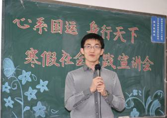 12月30日晚上,yl永利集团官网登录14、15级本科生共聚沙河校区主教209室,参加由院员工会学术实践部举办的主题为“心系国运,身行天下”的yl永利集团官网登录2016年寒假社会实践宣讲会。本次活动邀请到了yl永利集团官网登录王伟老师、李海明老师,校实践学术部副部长苏蕾以及荣获2015年寒假社会实践校级一等奖的马晓、李弘扬到场与同学们分享经验。yl永利集团官网登录团总支书记李莎莉老师出席本次宣讲会并发表了讲话。