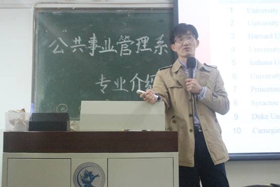 张相林老师负责为同学们介绍公共事业管理专业在本校的课程设置与培养方向。张老师按培养目标、培养要求、实践环节、课程设置、学分及时间分配的顺序介绍了公共事业管理专业培养方向。“做任何事要有精气神,不要犹豫不决,不要这山望着那山高,要坚持。”张老师真挚的告诫字字珠玑,同学们都受益匪浅。