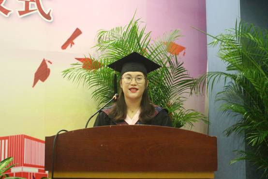 典礼进行第五项,毕业生代表发言。本科毕业生代表2015级国际政治班陈旖琦与研究生毕业生代表2017级公共管理硕士程程相继发言。