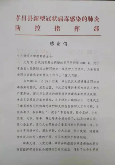 来自孝昌县防控指挥部的感谢信