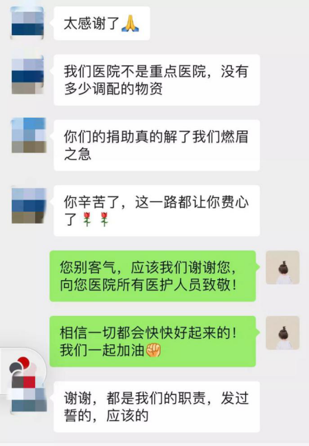 收到来自一线医生们的感谢和鼓励