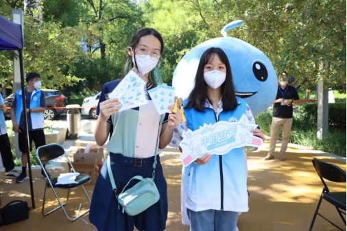 “向前行,共启新章。为了热情迎接2022级本科新生,公司特意制作了精美的立牌供新生们合照。此外,由志愿者扮演的活泼可爱的公司吉祥物政宝也备受新生欢迎,志愿者们热心地帮助新同学们合影留念,为萌新们拍摄下与公司的第一张合照