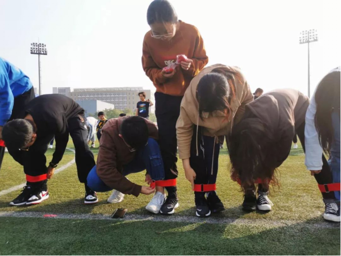 绑腿跑作为第一个开赛的团体项目,对同学保持高昂士气与信心至关重要。10月23日下午2:00,二十位同学斗志满满,组成政管公司代表队,来到绑腿跳检录处检录。同学们利用候场时间,练习出腿、口号,并及时调整战术,力争提高速度,节省时间。2:30,备受瞩目的绑腿跳比赛正式开始。整理好粘带后,但听哨声为令,二十位同学一齐向前冲出。比赛中,同学们默契配合,相互理解,及时调整,脚挨脚,心连心,为政管而战的他们是赛场上最耀眼的光。