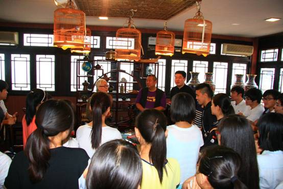 经过了中午短暂的休整,同学们又充满了活力。我们跟着袁老先生走进了北京最窄胡同——钱市胡同,再次穿过大栅栏街,走进了“中国布鞋第一家——百年老店内联升,见到了百年工艺,欣赏了内联升的鞋展,感受了其以“朝靴到千层底,再到奥运礼仪小姐用鞋”这三双鞋引领下的历史发展,其中体现出的历史传承的责任感同样值得我们敬佩。参观完内联升总店,实践活动也接近尾声了,袁老先生最后给同学们做了精彩的讲话,同学们表示了对袁老先生的诚挚谢意,带着对老先生的不舍与满满的收获,我们与老先生道别,也期待着下次能再次向老先生请教。