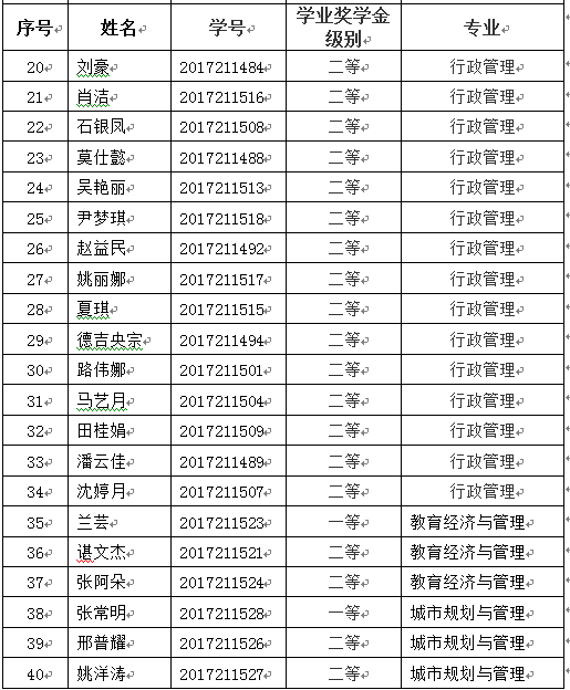三、yl永利集团官网登录2017级公共管理专业硕士研究生学业奖学金获奖名单