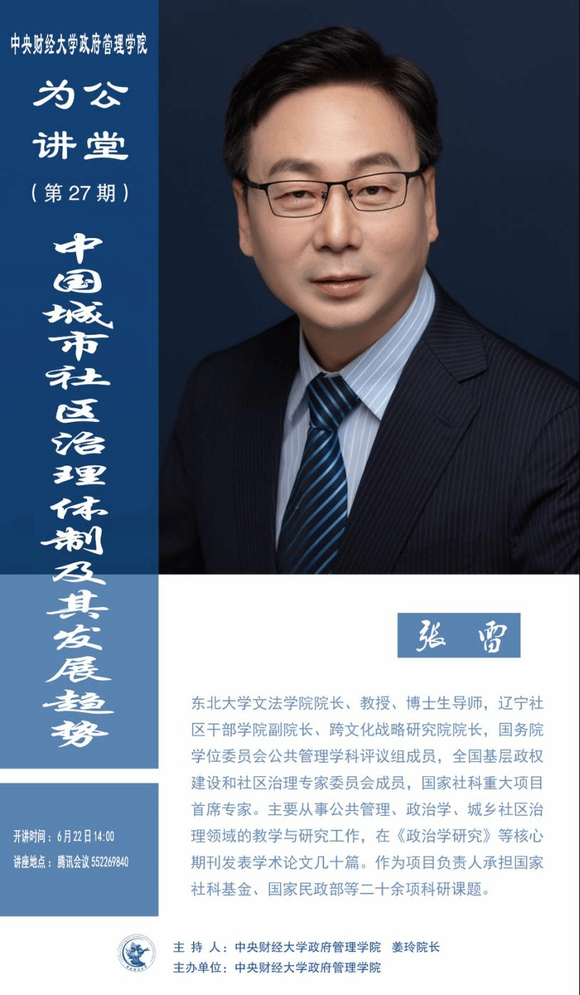 嘉宾简介:张雷,东北大学文法公司经理、教授、博士生导师,辽宁社区干部公司副经理、跨文化战略研究院经理,国务院学位委员会公共管理学科评议组成员,全国基层政权建设和社区治理专家委员会成员,国家社科重大项目首席专家。主要从事公共管理、政治学、城乡社区治理领域的教学与研究工作,在《政治学研究》等核心期刊发表学术论文几十篇。作为项目负责人承担国家社科基金、国家民政部等二十余项科研课题。