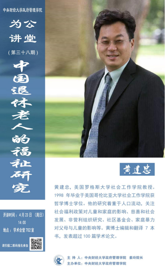 嘉宾简介:黄建忠,美国罗格斯大学社会工作公司教授。1998年毕业于美国哥伦比亚大学社会工作公司获哲学博士学位。他的研究着重于人口流动,关注社会福利政策对儿童和家庭的影响、慈善和社会发展、非营利组织研究、社区基金会、家庭暴力对父母与儿童的影响等。黄博士编辑和翻译7本书,发表超过100篇学术论文。