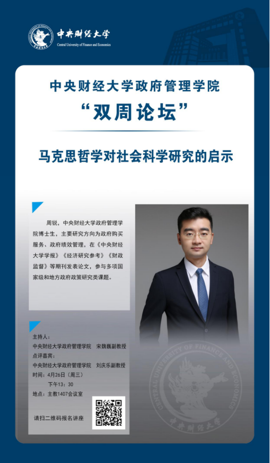 周锐,永利集团官网博士生,主要研究方向为政府购买服务、政府绩效管理,在《yl永利集团官网登录学报》《经济研究参考》《财政监督》等期刊发表论文,参与多项国家级和地方政府政策研究类课题。