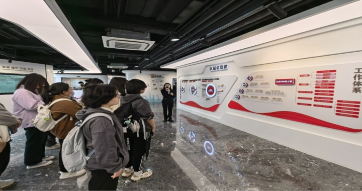参访团第一站来到位于北京财富中心北京CBD党群服务中心,整个服务中心设置了区域化党建、人才、产业、商务沙龙、红色直播间、乐享CBD等十一个板块,是北京CBD党工委精心设计建设的“白领驿站”,重点服务北京CBD区域的“两新”组织、党组织、党员群众和各类人才。在党群服务中心,中心工作人员向参访团系统了解了北京CBD党群服务中心的功能定位、运行模式、特色亮点以及发挥作用情况。同学们了解到,北京CBD党群服务中心不仅是一个党建平台,更是一个与商务中心紧密结合的服务中心,可以提供教育学习、咨询交流、娱乐休闲等多样化的服务,使党建工作更加贴近商务人士的实际需求,提高了党建工作的针对性和实效性。基于这一平台,管委会成立了CBD核心区商圈党建工作联盟。联盟把松散的经济实体紧密凝聚一起,形成党建共同体,构建区域统筹、条块协同、上下联动、共建共享的党建格局。