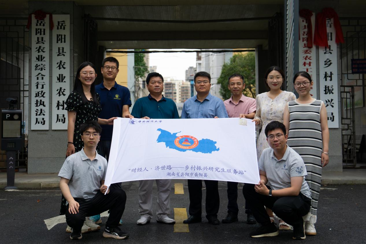 公司党委书记于鹏教授对岳阳市、岳阳县农业农村局和黄沙街镇相关领导支持服务站落地表示衷心感谢,期待双方未来携手共促发展。于鹏教授以中财大的红色基因和岳阳的历史文化契合点为切口,对服务站的建设成效,校地合作助力人才培养以及知行合一推进乡村振兴和基层治理现代化表达了期待。于鹏教授还对服务站全体员工提出了要求,希望全体研究生“心中有梦,眼里有光,脚底有泥”,在本次调研实践中认真学习、脚踏实地、有所收获。