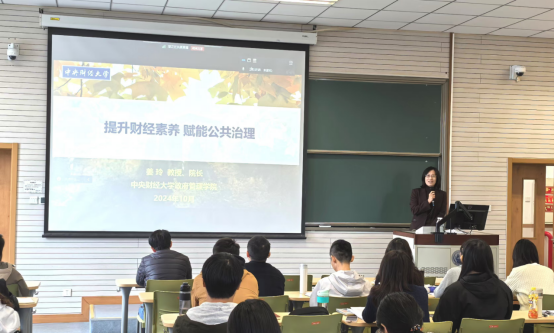 2024年10月27日和10月29日,yl永利集团官网登录经理姜玲教授以“提升财经素养 赋能公共治理”为主题,分别在周末班和集中班课堂为2024级MPA新生开展了“经理第一课”专题讲座。讲座围绕深入学习贯彻党的二十届三中全会精神、全国教育大会精神,通过对新时代公共管理学科和MPA教育使命的分析,引导新生坚定理想信念,明确研究生阶段的学习目标,进一步拓宽对公共治理的认知视野。