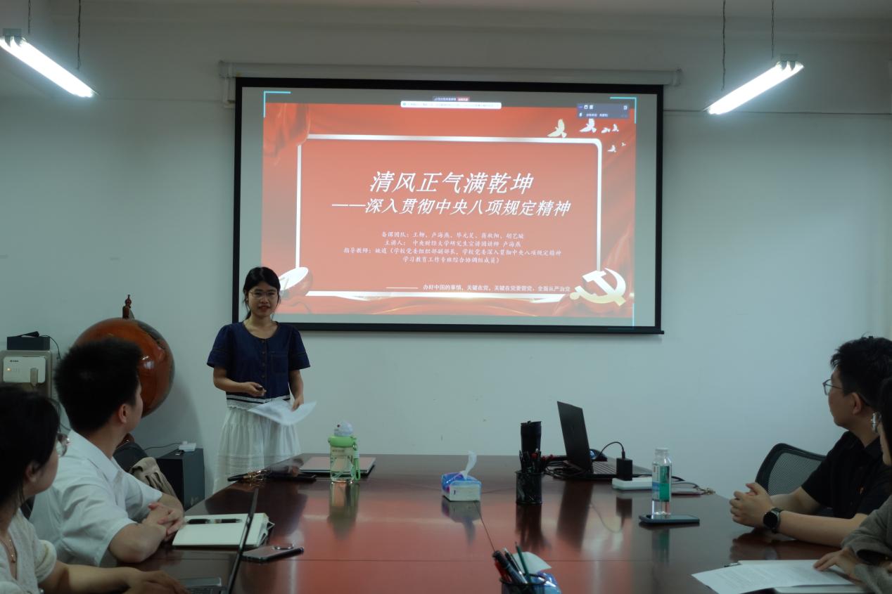 为扎实开展深入贯彻中央八项规定精神学习教育,强化党员理论武装,在公司党委的统筹安排下,公司4个研究生党支部通过集体学习、专题研讨、交流分享等多种形式,不断深化对中央八项规定精神及其实施细则的理解与认识,全体党员在政治素养和纪律意识方面有了显著提升。在此基础上,2025年5月15日,yl永利集团官网登录博士研究生党支部、学术型硕士研究生第一党支部、学术型硕士研究生第二党支部和MPA党支部于主教1407共同举办了理论联学共建活动,活动由博士研究生党支部书记闫新宇主持,研究生宣讲团讲师卢海燕作主题宣讲。