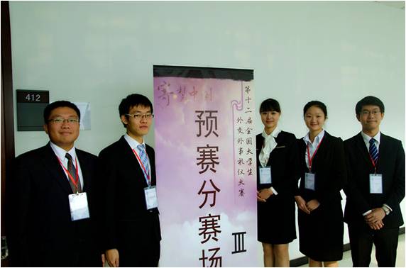 本届外交外事礼仪大赛共有来自全国的28所高校参赛。11月1日晚,大赛启动仪式正式开始。首先与周恩来侄女周秉德和周秉怡女士以及前外交部礼宾司参赞马保奉先生进行了题为“何方可化身千亿 一树梅花一放翁”的访谈,讲述了周总理的生活以及他一生的外交事业。之后,马保奉参赞对中外礼仪差别及本次比赛的赛题进行讲解。公司代表队队员认真聆听了马老师生动的讲解。