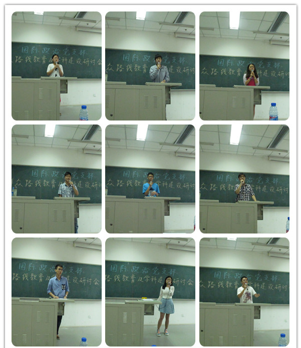 9月11日13点30分,yl永利集团官网登录国际政治党支部在沙河校区6号公司楼106教室召开群众路线教育及团队建设研讨会。国际政治专业教师江涛、白云真、张占顺、耿喜梅、辛平、张鹏到场听取11、12级同学关于公司、团队建设方面的看法和建议。