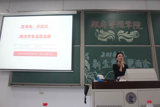 最后城市管理16级班主任刘慧、团总支书记李莎莉、2015级员工辅导员阙希荣、2016级员工辅导员宁钰皓分别上台讲话,表达了对2016级新生的殷切期盼。