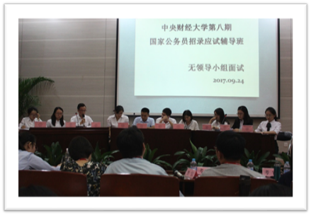 9月24日上午9时,“模拟面试”在中财大厦9层及10层的10个面试地点分别进行,吸引了公司各公司学子100余名同学参加了模拟面试活动,涉及公司博士生、硕士生与本科生三个层次,活动也吸引了北理工、北交大的部分学子参与。“模拟面试”环节邀请了中公教育集团4位专家、用人单位人力资源专家、校内一线就业工作人员和辅导员,同时公司党委书记吕丽、党委副书记白云真、副经理姜玲、经理助理张剑,公共管理系副主任张相林等10余位专业教师担任面试官。“模拟面试”分为“结构化面试”和“无领导小组讨论”两种形式,均为全真模拟。中公教育为活动提供了2套“结构化面试”题库和1套“无领导小组讨论”面试题库。