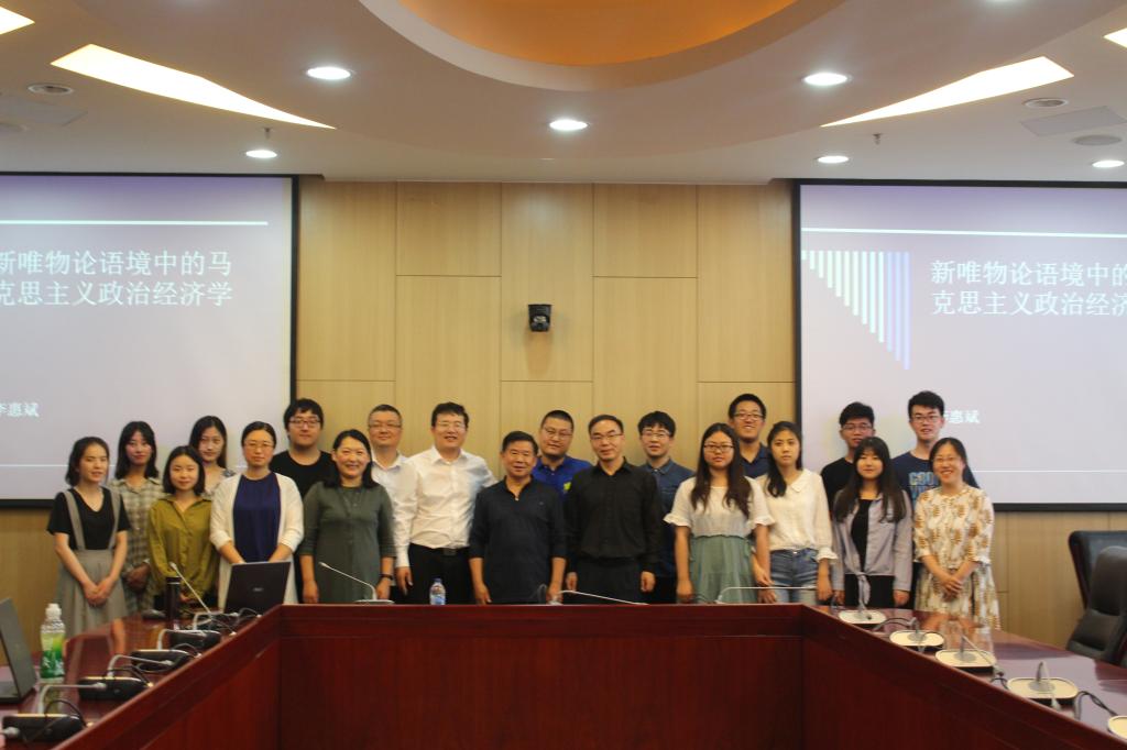 5月15日下午,原中央编译局研究员,博士生导师,巡视员,中国现实问题研究中心主任,中央联系专家,国务院特贴专家李惠斌教授,于公司南路校学术会堂604讲授“新唯物论语境中的马克思主义政治经济学”学术专题。本次学术演讲获得2019年yl永利集团官网登录“中国特色经济学、公共管理学与政治学的文化建构”专题学术讲座项目资助,由yl永利集团官网登录与中国财政协同创新发展中心共同主办,永利集团官网白云真、江涛、辛平、耿喜梅以及中国财政协同创新发展中心曹明星、姚东旻、耿纯、罗伟杰、惠炜、丁怡、李慧青出席,由国际政治系主任白云真副教授主持。