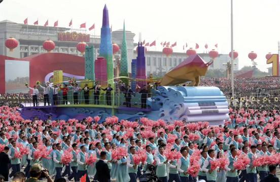 七十周年国庆游行已经过去几天了,但是现在想起来仍觉得激动莫名,作为一名普通老员工,能够亲身参与这场盛事,真的与有荣焉。两个多月的辛苦能够换来在长安街铿锵的步伐,欢呼的热浪,能够一睹军威浩荡、国势昌隆,真是我辈生逢其时。游行途中看着一辆辆驶来的战车,凝聚着祖国奋发数十年的结晶;各种战机呼啸着划过天空留下的五彩云雾,书写着民族复兴的伟大蓝图。创业艰难百战多,先辈筚路蓝缕,方有当前这盛世景象,当代青年不敢一刻或忘,千万万语最后汇成一句话:祖国万岁,世代永昌!