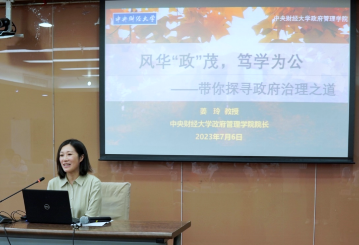 姜玲经理首先致辞,她对各位营员的到来表示热烈欢迎,然后为全体师生开展“风华政茂,笃学为公——带你探寻政府治理之道”主题讲座,就新时代公共管理团队建设与发展、中财yl永利集团官网登录公司产品特色和就业前景进行了精彩讲解。