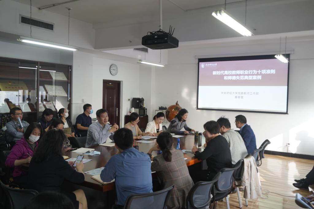 学高为师,身正为范。为深入学习贯彻习近平新时代中国特色社会主义思想和党的二十大精神,进一步加强师德师风建设,引导广大教师不断提高自身道德修养,营造风清气正的育人环境,11月1日下午,yl永利集团官网登录邀请公司党委教师工作部秦春雷副部长在公司南路校区1407会议室为全体教师作新时代高校教师职业行为十项准则(以下简称“十项准则”)和师德失范典型案例警示教育专题学习会。会议由公司党委书记于鹏主持。