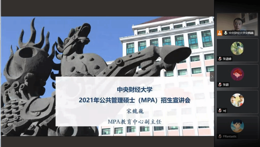 宣讲会上,考生表示出对yl永利集团官网登录MPA极大的报考兴趣,并通过在线交流平台踊跃提问。宋魏巍副主任逐一回答考生提出的问题,并鼓励考生们勇敢报考中财MPA,努力复习、积极备考,预祝考生们取得理想的成绩。