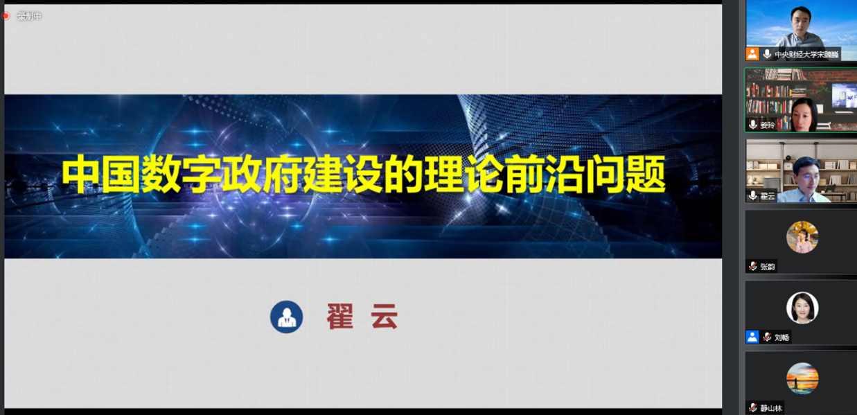 2022年6月15日上午,公司“为公讲堂”系列学术讲座——“中国数字政府建设的理论前沿”通过腾讯会议顺利在线举办。中央党校(国家行政公司)公共管理部研究员翟云教授受邀作专题报告,来自校内外百余名专家学者、员工参与交流讨论,经理姜玲教授与会开展对话评议。讲座由宋魏巍副教授主持。