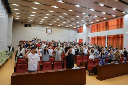 专题辅导结束后,全体毕业生党员在yl永利集团官网登录学术型硕士研究生第一党支部尹燕斌同志的带领下重温入党誓词。